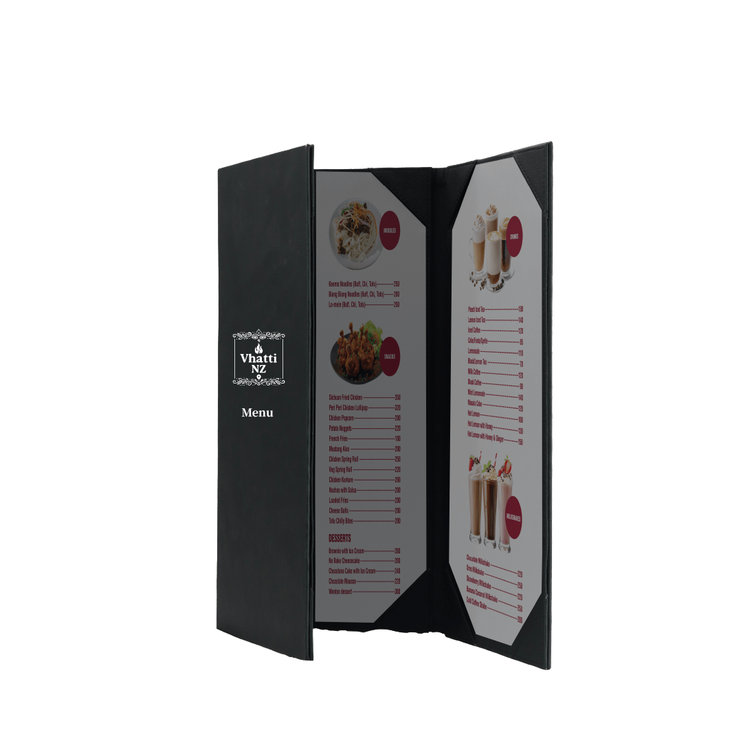Present your menu in style with our Two Side Leaf Menu Folder, designed to combine durability with elegance. Perfect for restaurants, cafes, bars, and hotels, this folder ensures your menu stands out while staying well-protected.